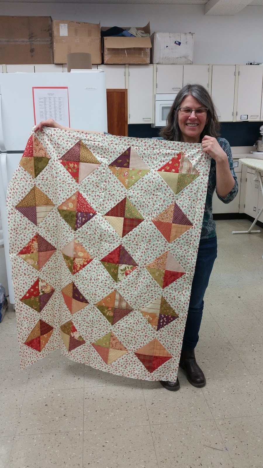 Here is Marianne with her "celebrity" quilt! It was featured on both Sherri Fall's and the Fat Quarter Shop's instagram and facebook pages! Whoot! Whoot!